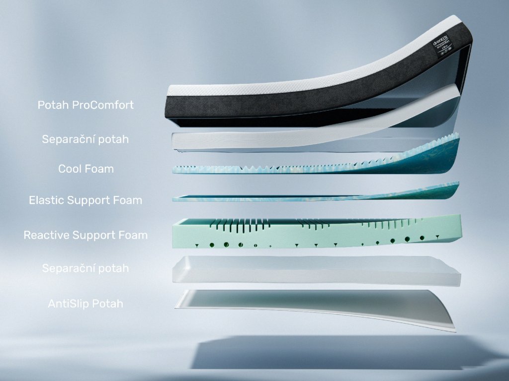 Složení jádra: | 3,5 cm Cool Foam, 2,5 cm Elastic Support Foam, 16 cm Reactive Support Foam |